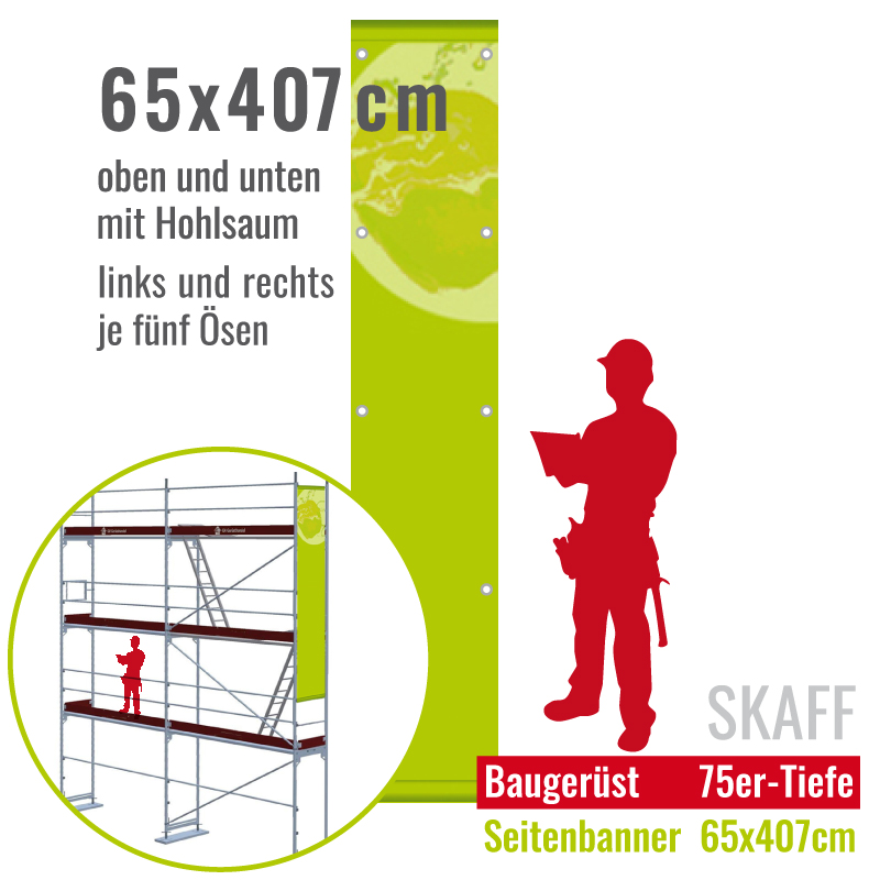 Startseite » OUTDOOR-BANNER & PRINT » WERBEBANNER » GERÜSTBANNER » Baugerüstbanner SKAFF mit Hohlsaum 65x407cm (B x H)