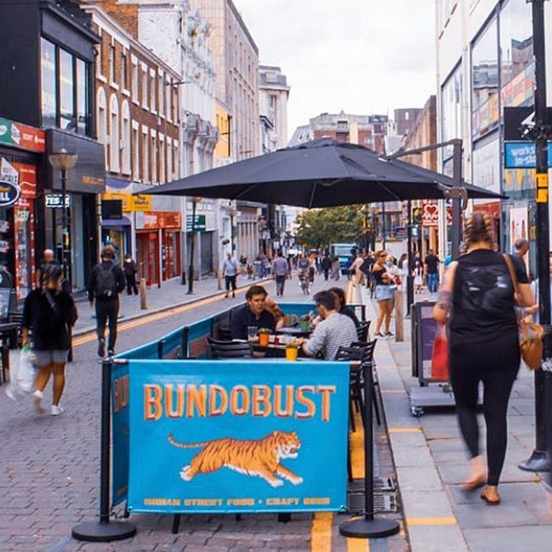 Praktische und schöne Abtrennung für die Außengastronomie von APROFLAG