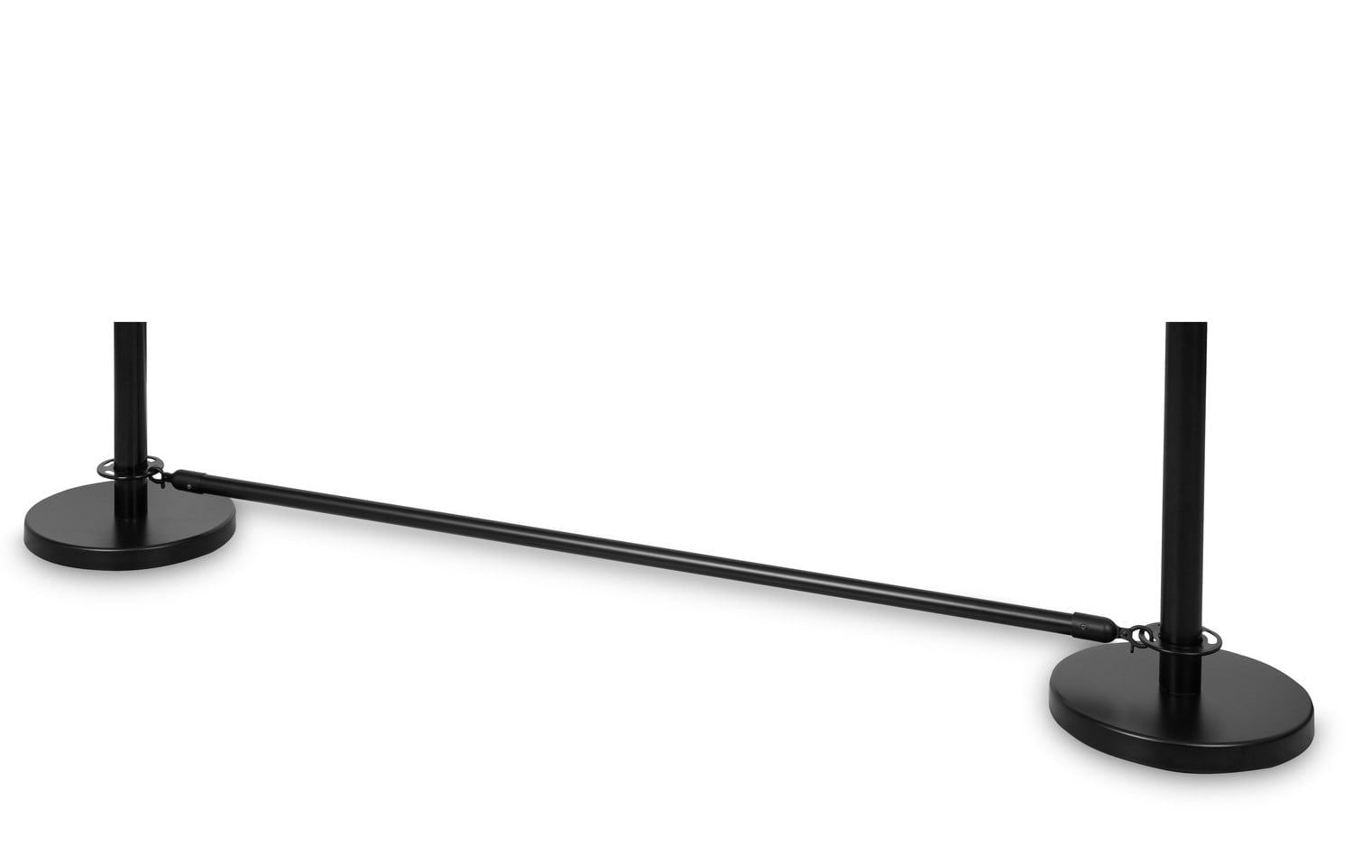 1 Stück Metallpfosten mit schwerem Metallfuß und je 1 Stück obere und untere Haltestange.