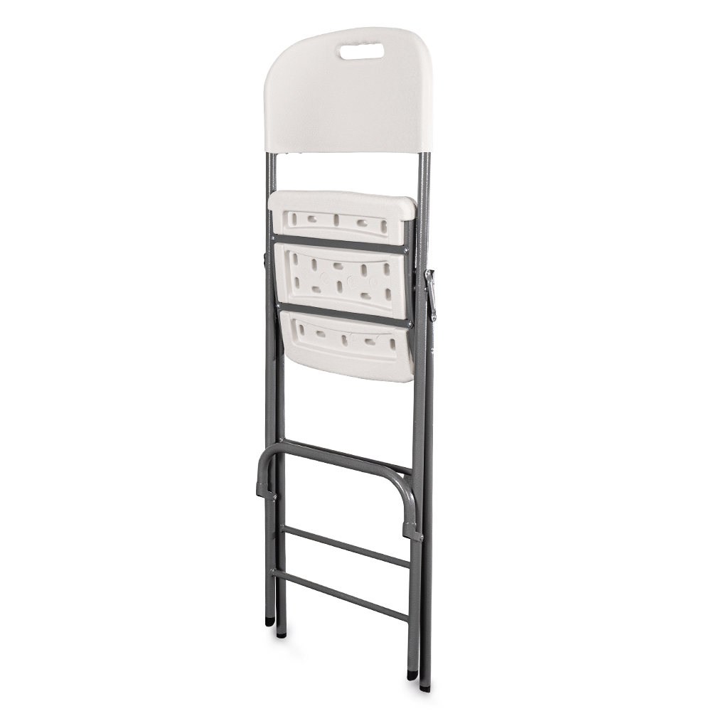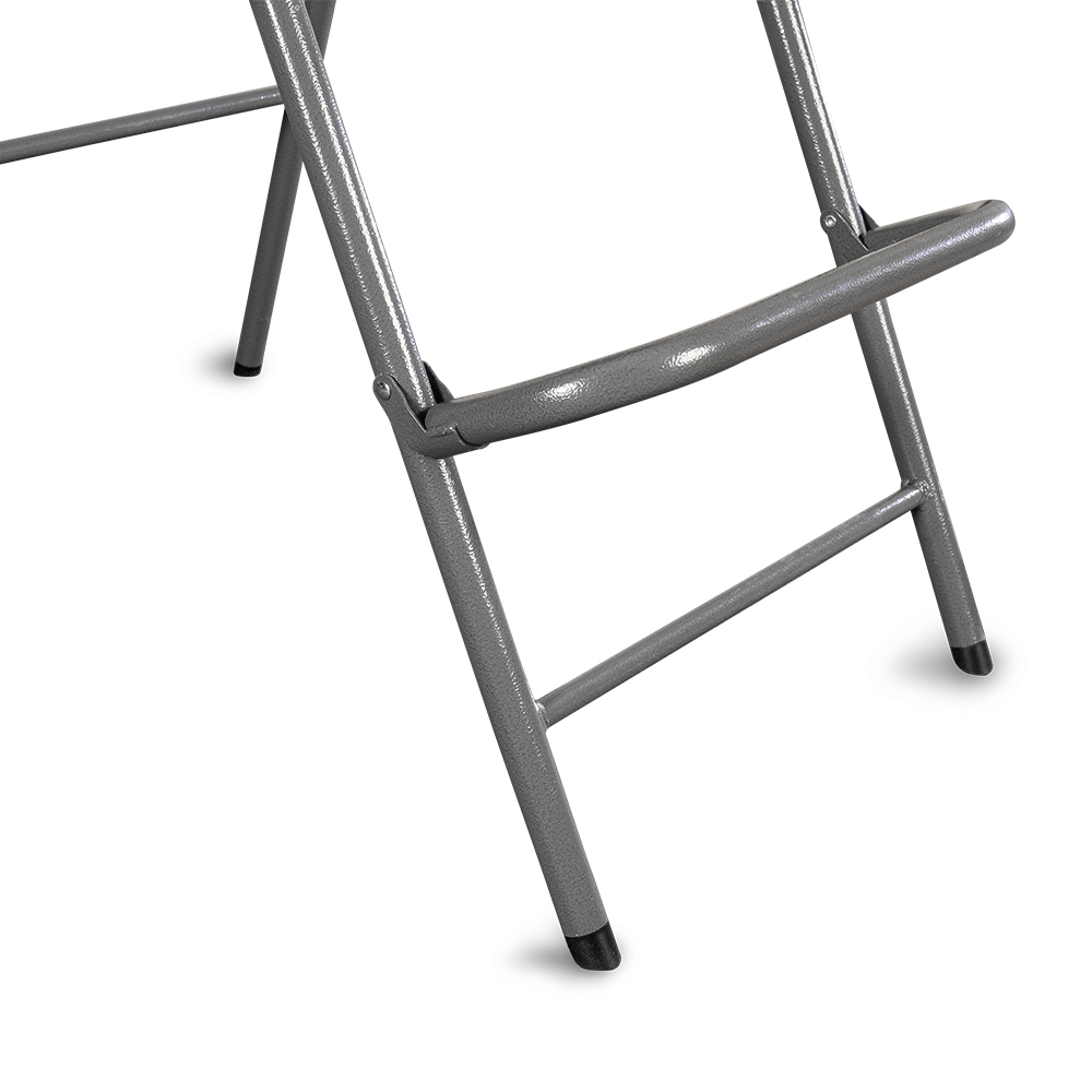 Der EVO Klappstuhl ist aus pulverbeschichtetem Stahlrohr und einer Sitzfläche und Lehne aus hochwertigem Polyethylen-Kunststoff gefertigt. Bis 200kg belastbar.