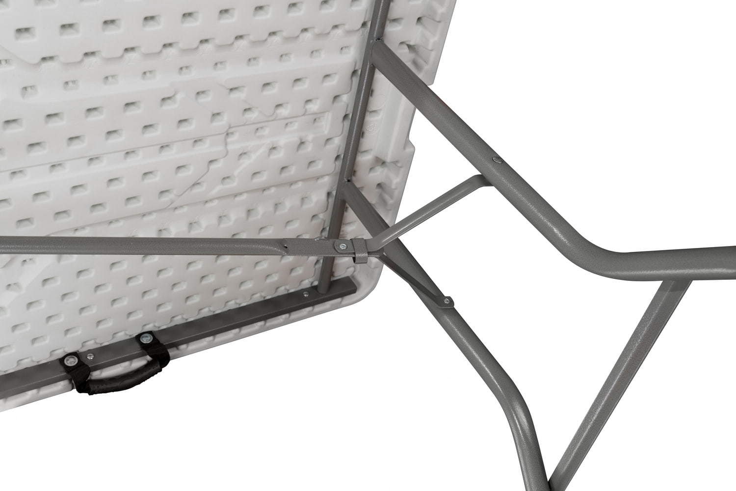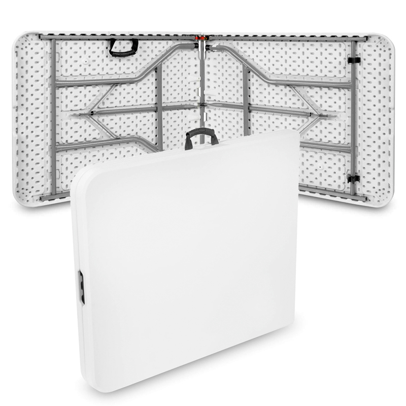 Unser EVO Bierzelt-Tisch ist aus pulverbeschichtetem Stahlrohr (Ø25mm) und einer Tischplatte aus robustem Kunststoff (Polyethylen) gefertigt. Er ist auf halbe Größe faltbar und hat zum Tragen einen Griff. Bis 200kg belastbar.