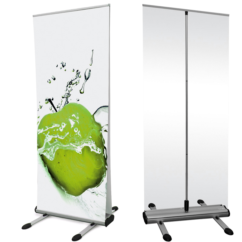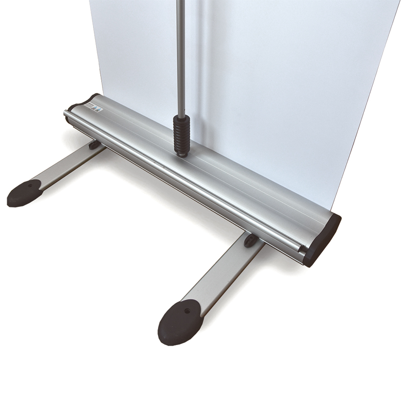 Praktisches, wetterfestes und beidseitiges Outdoorbanner. Die Banner aus wetterfestem PVC-Planenmaterial werden in den extraschweren Metallfuß mittels Klebestreifen befestigt und bei Einsatz ausgerollt. Zwei Ausstellfüße sorgen für besten Stand und eineextrastabile Maststange mit Stahlfeder hält die Banner auch bei stärkerem Wind in der Senkrechten.