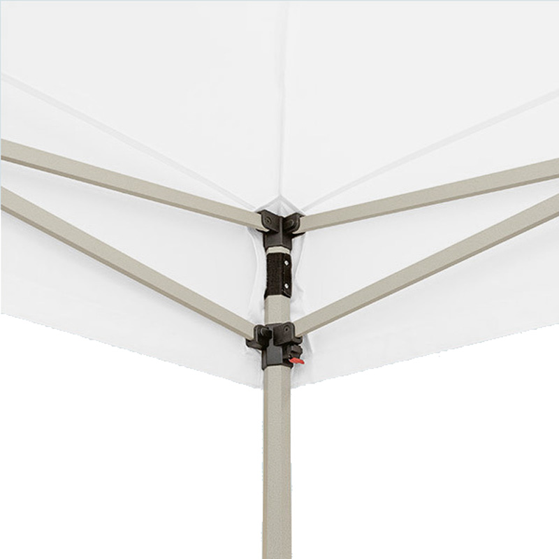Das hochwertige und stabile Faltzelt besteht aus silber-eloxierten Aluminium-Profilstangen. Die sechseckigen Standprofile (40x45mm) und die hochwertigen, patentierten Kunstoffverbinder verleihen dem PROMOTENT eine hohe Stabilität bis Windstärke 5 (bei ordnungsgemäßer Sicherung mit Gewichten und Seilen) sowie eine lange Lebensdauer. Die Standprofile sind vierfach arretierbar (für Durchgangshöhe 196cm, 204cm, 212cm und 220cm). Die Seitenwände sind standardmäßig ca. 220cm hoch.Das Zeltdach wird über eine Kurbel gespannt. Das praktische Faltzelt kann von einer Person in wenigen Minuten aufgestellt und wieder abgebaut werden. Beim ersten Aufbau wird das Dach mit Klettbändern befestigt. Beim Abbau muss das Zeltdach nicht mehr demontiert werden.