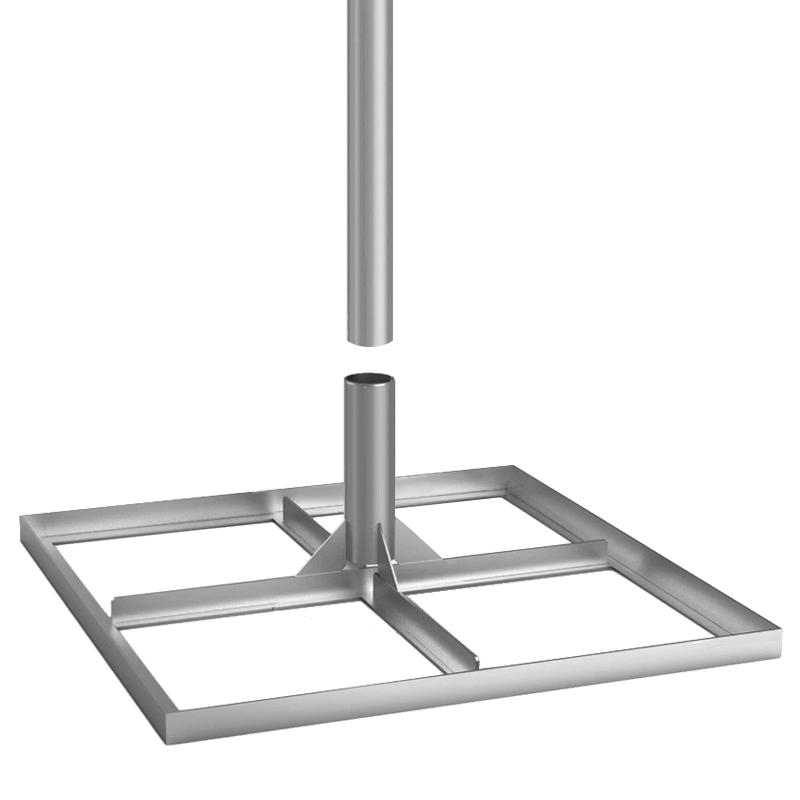 - Mobiler Standfuß, 100x100cm, bis 400kg (für 4-8 Betonplatten à 50kg oder 8-12 Betonplatten à 25kg), Mastaufnahme mit Hülse (40-50cm)