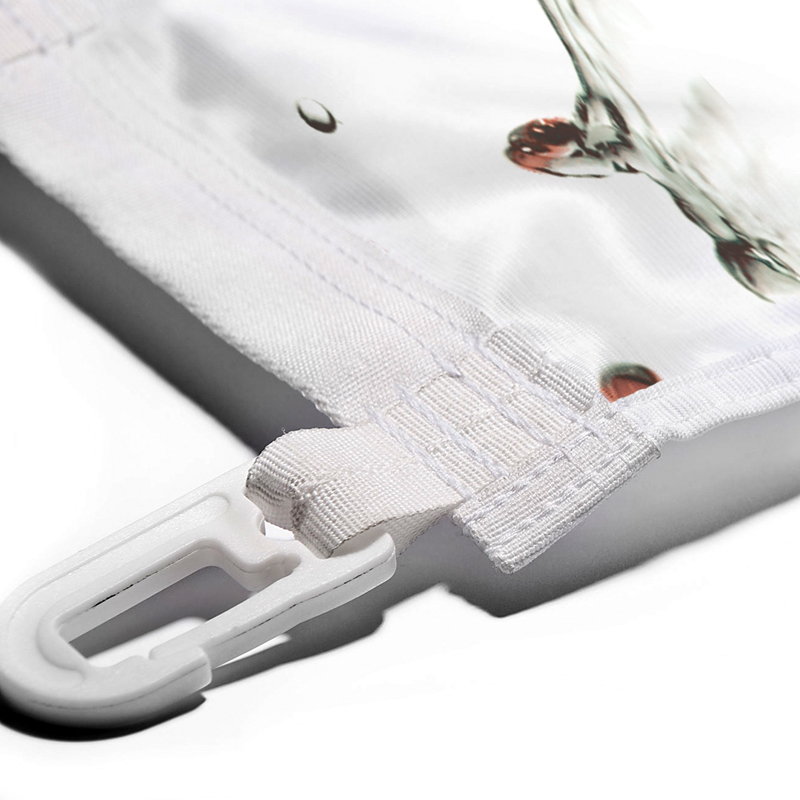 - Höherer Durchdruck - auch bei etwas stärkerem Fahnenmaterial. Fast 100% bei 110g Polyester.