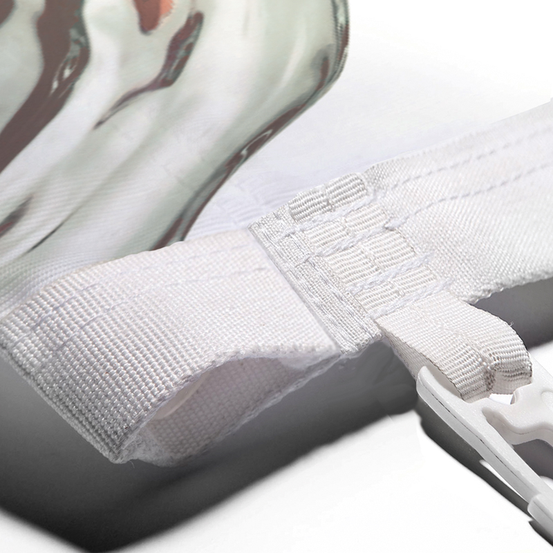 - Nylon, 90g/qm, extra reißfest, lang haltbar und leicht, schwer entflammbar nach DIN 4102-1, B1