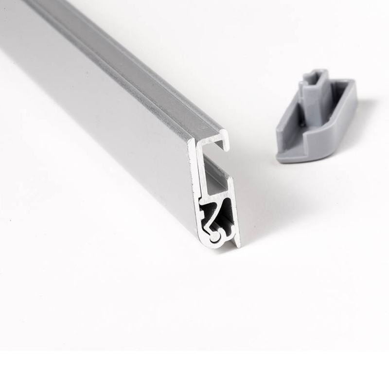 - Farbe der Alukassette, Stange und Klemmleiste: Silber eloxiert