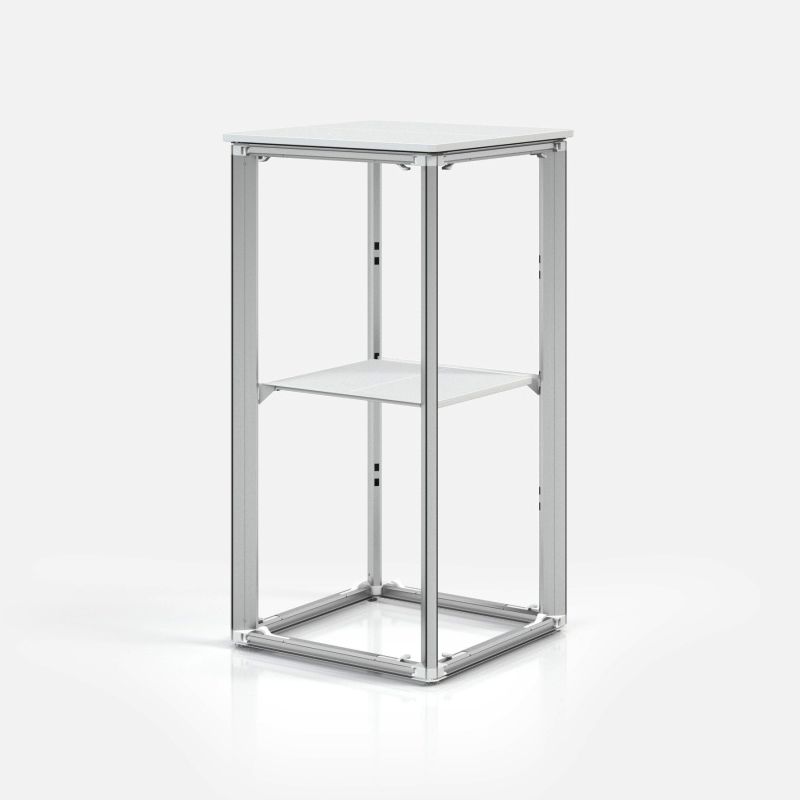 Der CUBIC SEG-Counter ist leicht zu montieren. Es dauert nur wenige Minuten, um ihn einsatzbereit zu machen. Die klappbare Tischplatte erleichtert den Transport zusätzlich und der gesamte Aufbauprozess erfolgt ohne Werkzeuge. Trotz der robusten Konstruktion ist der Counter leicht und mobil.