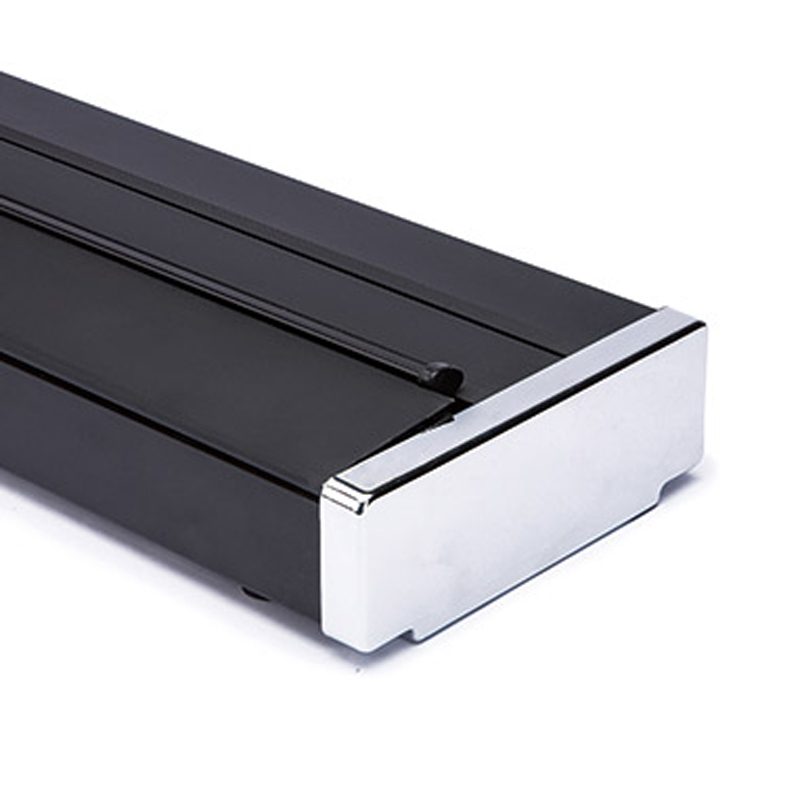 - Bannerkassette aus robustem Aluminium mit verchromten Seitenkappen, die das Banner ideal schützt. Standfest ohne Füße.