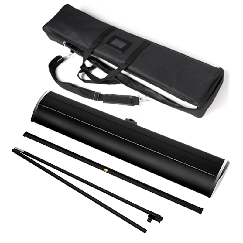 - Robuste Tragetasche mit Längsreißverschluss, zum bequemen Verpacken und Transportieren des Rollbanners.
