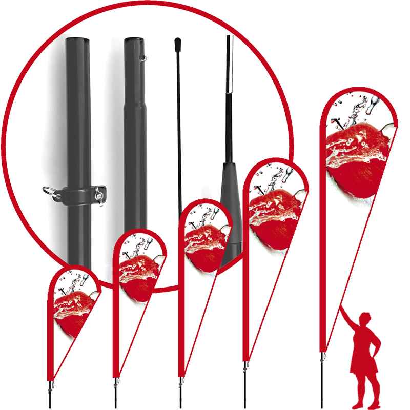 Flaggenhöhe Mast + Fahne | 235cm | 290cm | 345cm | 400cm | 520cm |