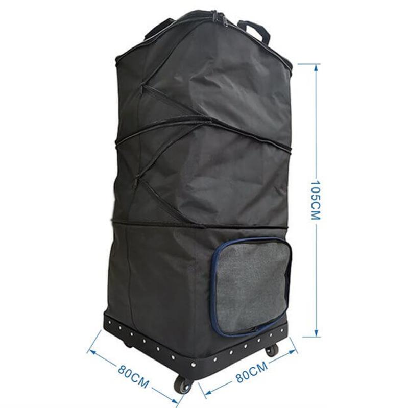Sehr praktische Transporttasche, die sich dem Stauvolumen anpasst. So lässt sich die Transporttaschen von 80x80x40cm auf bis zu 80x80x105cm vergrößern.
