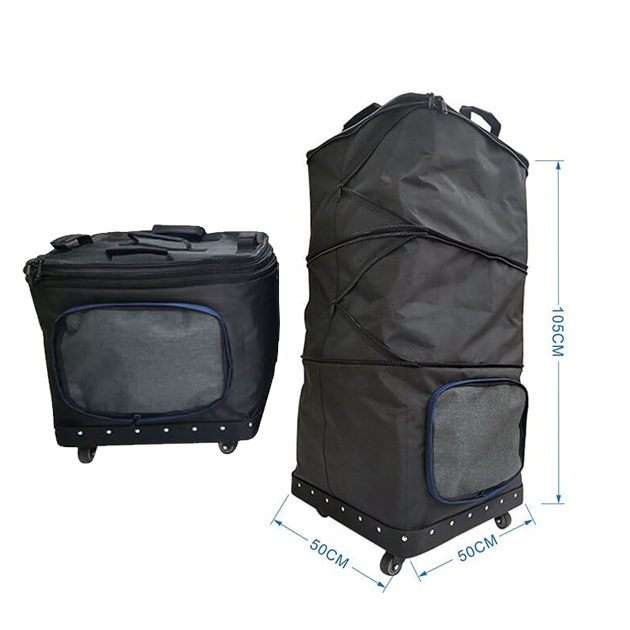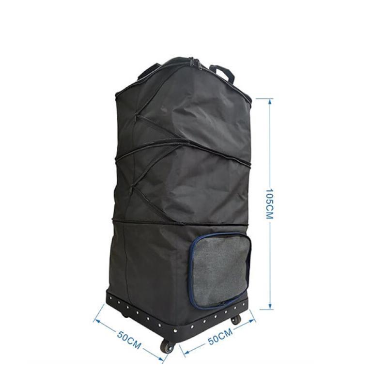 Sehr praktische Transporttasche, die sich dem Stauvolumen anpasst. So lässt sich die Transporttasche von 50x50x40cm auf bis zu 50x50x105cm vergrößern.