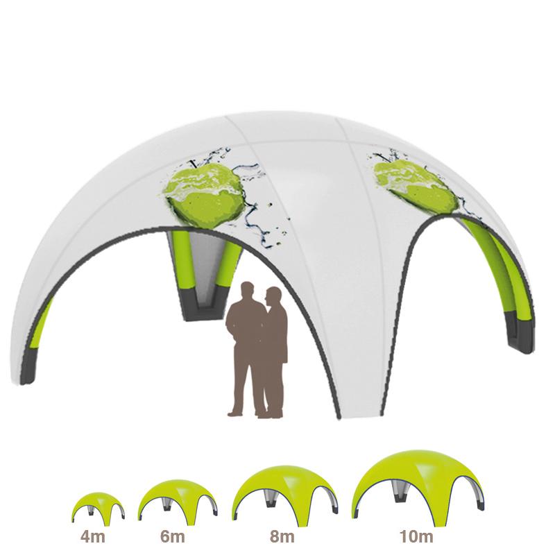 Das konstant aufblasbare INFLAT X-TENT SPIDER Aufblaszelt mit 4 doppelten luftbefüllten Standbeinen ist die bestmögliche Lösung für Outdoor-Events unter freiem Himmel. Schnell aufgebaut, sehr windfest dank der acht Beinen (daher Spider) und mit extra großer Außenwerbefläche. Einmal aufgeblasen hält das INFLAT X-TENT SPIDER Aufblaszelt die Luft bis zu 30 Tage. Keine störenden Aufblasgeräusche mehr. Zudem sind die Standbeine weitaus schlanker als bei den herkömmlichen Aufblaszelten, was zu einer viel schöneren und eleganteren Optik des Eventzeltes führt.
