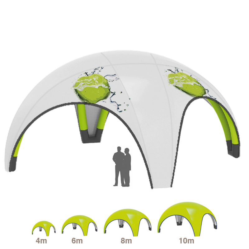 Das konstant aufblasbare INFLAT X-TENT SPIDER Aufblaszelt mit 4 doppelten luftbefüllten Standbeinen ist die bestmögliche Lösung für Outdoor-Events unter freiem Himmel. Schnell aufgebaut, sehr windfest dank der acht Beinen (daher Spider) und mit extra großer Außenwerbefläche. Einmal aufgeblasen hält das INFLAT X-TENT SPIDER Aufblaszelt die Luft bis zu 30 Tage. Keine störenden Aufblasgeräusche mehr. Zudem sind die Standbeine weitaus schlanker als bei den herkömmlichen Aufblaszelten, was zu einer viel schöneren und eleganteren Optik des Eventzeltes führt.