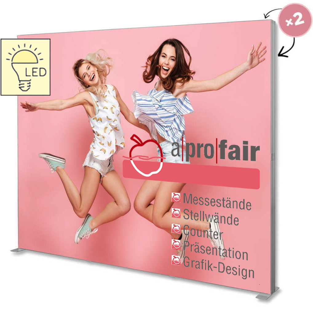 Startseite » MOBILE INDOOR-DISPLAYS » SEG-FRAMES » LUMIX SEG-Frame mit LED » LUMIX 285 SEG Standrahmen mit LED, 285x250cm