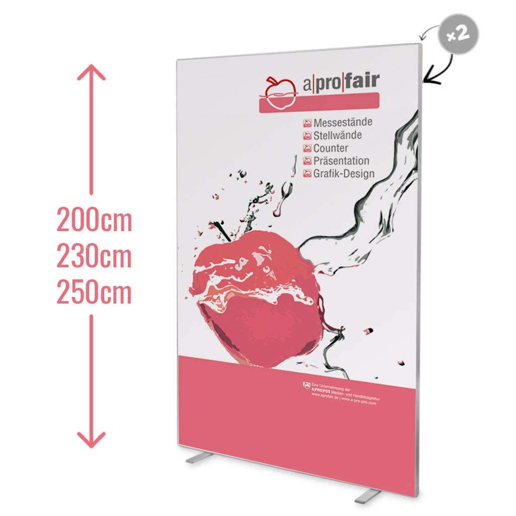 Das MEGA GO SEG-Messewandsystem (SEG: Silicone Edge Grafics) zeichnet sich durch seine vormontierte Rahmenstruktur aus, die sich einfach öffnen lässt. Dank dieses Mechanismus lässt sich das gesamte Produkt in sekundenschnelle entfalten. Zwei ausklappbare Stellfüße sorgen für sicheren Halt.