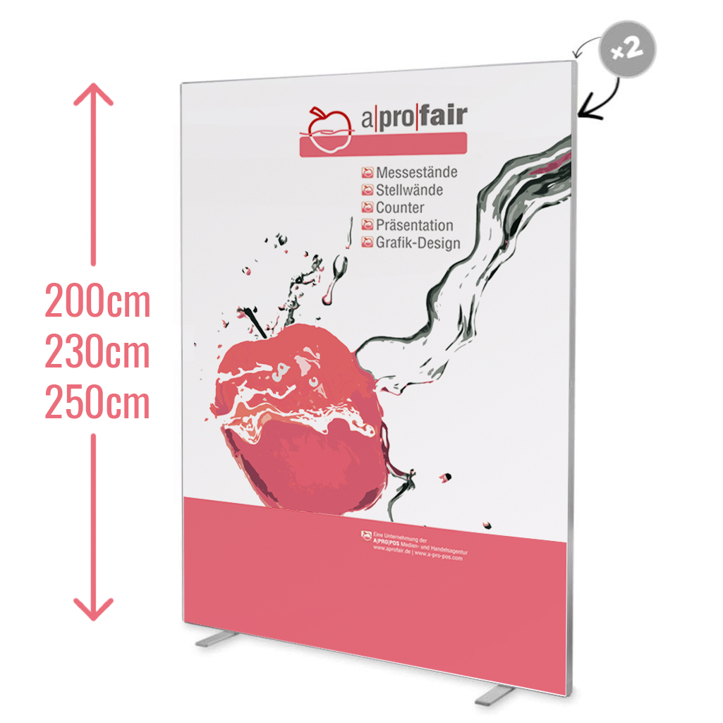 Wandmodul für das ultraleichte, modulare MEGA GO SEG-Messewand-System, das sich ohne Werkzeug in wenigen Minuten aufbauen lässt.