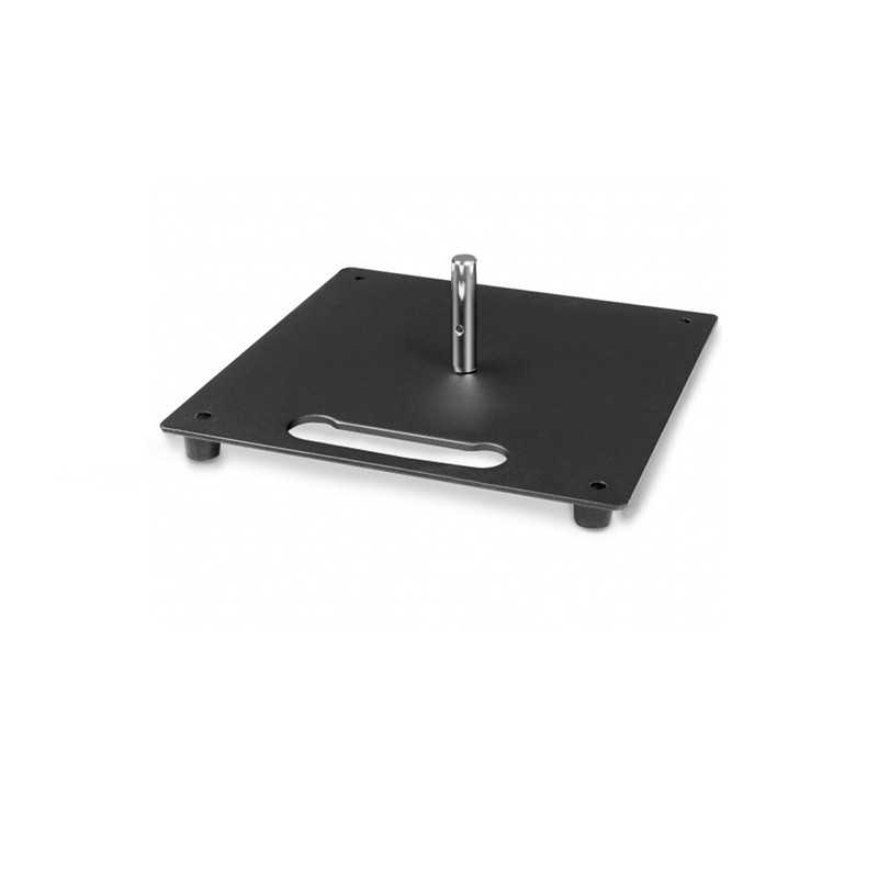 Schwarz lackierte Metallplatte mit Metallstift zur Aufnahme des Fahnenmastes. Inkl. praktischem Tragegriff.