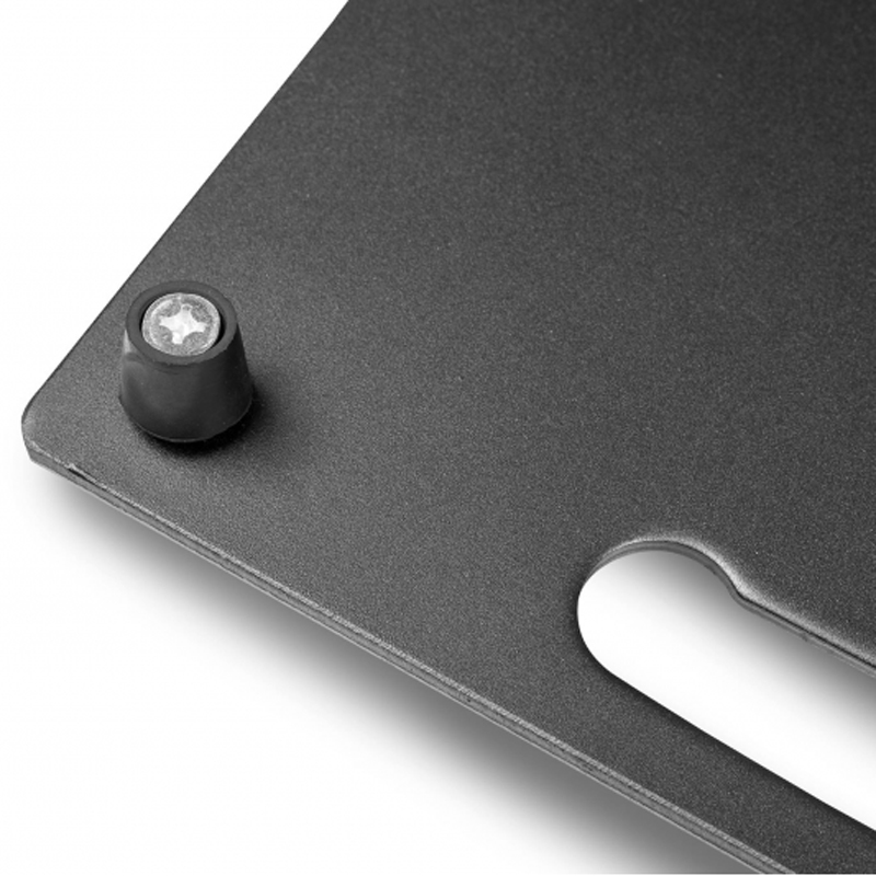 Die 4 Stück seperat beigelegten Gummifüße zum Selbsteinschrauben verhindern das Abfließen von Wasser unterhalb der Metallplatte und somit das vorzeitige Rosten. Ebenso erleichtern die Füße das Hochheben der Metallplatte und optimieren die Standfestigkeit, da das Wackeln auf unebenen Böden reduziert wird.