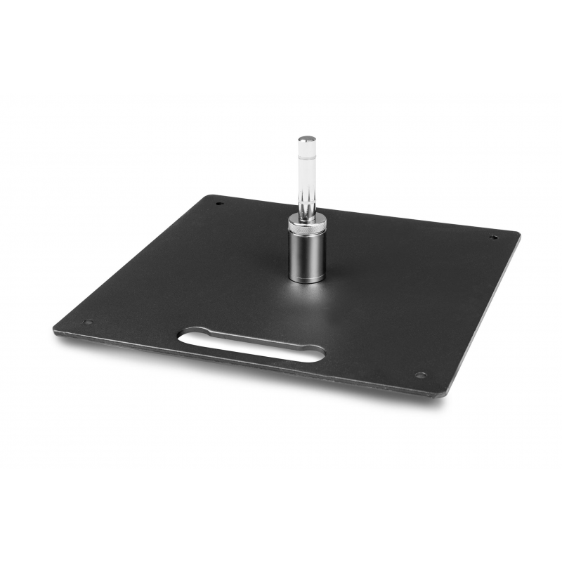 Montage mittels Verschraubung auf Metallplatte STEEL, Standfuß CAR und Kreuzfuß CROSS HEAVY anstatt dem beigelegtem Metallstift.