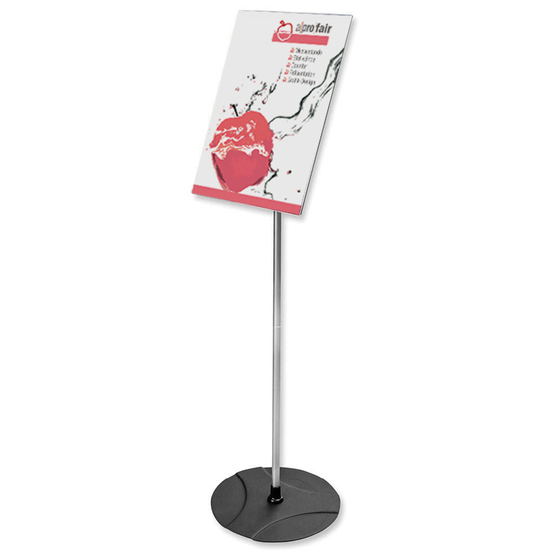 Eleganter, leichter und sehr stabiler Plakatständer mit verstellbarem Rahmen. Ideal um Informationen zu präsentieren oder Hinweise zu geben. Z.B. auf Messen, Ausstellungen, in Foyers und in der Gastronomie.