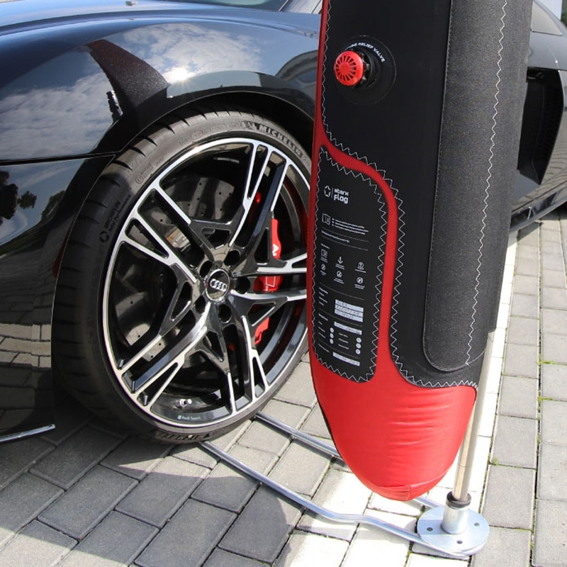 Der Car-Base wird vom Rad eines Fahrzeuges gehalten. Passend für alle StarX-Größen. Er ist ausgestattet mit einem Rotator, damit sich die StarX-PneuFlag immer gut im Wind dreht.