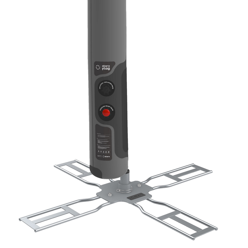 Extragroßer Kreuzfuß zum Aufstellen der StarX PneuFlag auf festen, ebenen Untergründen. Der CrossBase ist mit einem Rotator ausgestattet, damit die StarX PneuFlag sich immer gut im Wind dreht.Optional können Extra-Gewichte dazubestellt werden, dann hält die Fahne auch größere Winde bis WS 5 aus.