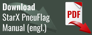 Bitte verwenden Sie die beiliegende Datei zur Erstellung Ihrer Druckvorlage.- Template StarX PneuFlag, für die Verwendung für die Fahne