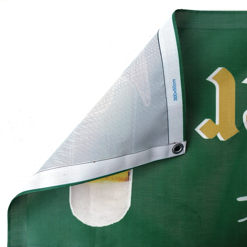 Bei beidseitigem Druck haben Sie die Wahl, das gleiche Bannermaterial wie beim einseitigen Druck zu nehmen oder das PVC Mesh Premium, das etwas dicker und daher lichtundurchlässiger und robuster ist.