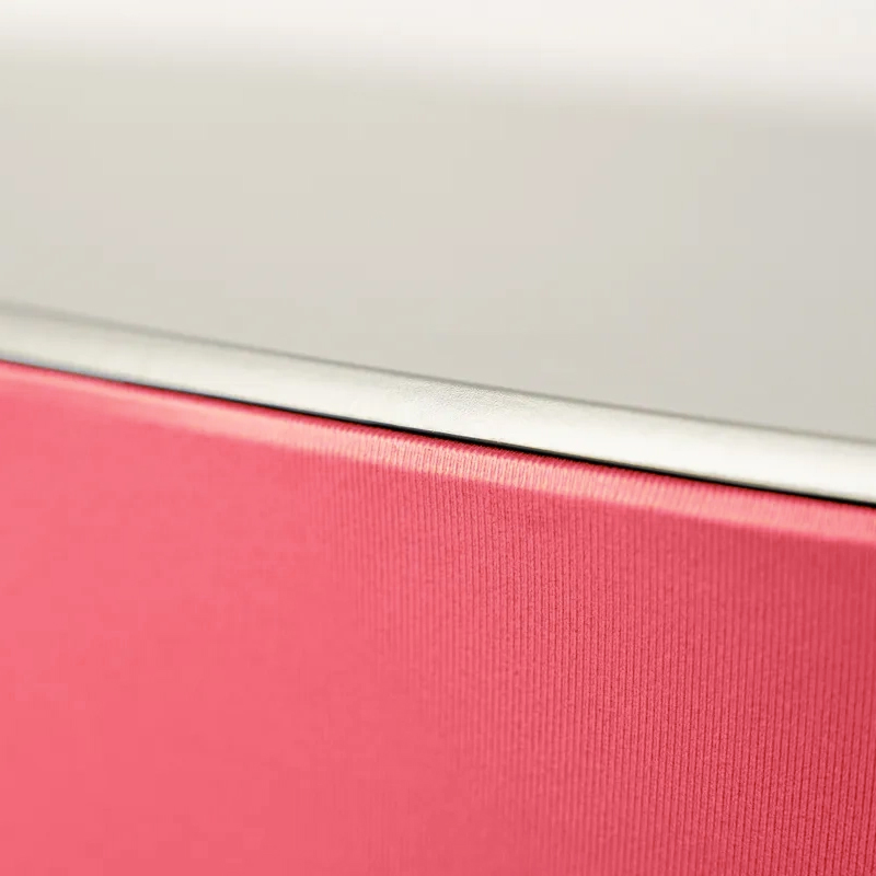 Der TexCounter OVAL zeichnet sich durch einen schnellen und intuitiven Aufbau aus, der keine Werkzeuge erfordert. Nach dem Zusammenbau der Konstruktion aus Aluminiumrohren und MDF-Platten, muss lediglich der bedruckte Stoff darübergezogen werden. Dieser wird mit einem Silikongummi befestigt, der in eine Nut der Tischplatte eingeschoben wird. Das gesamte Setup kann leicht zusammengeklappt und in einer kleinen Tasche verstaut werden, was den Transport und die Lagerung des Produkts erleichtert.