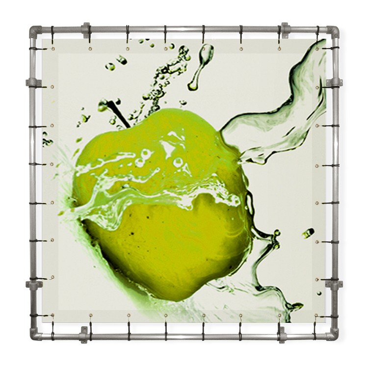 - Die Banner werden im vollfarbigen, digitalen UV-Druck produziert. Dabei werden die Farben mit UV-Licht beim Druckvorgang gehärtet.