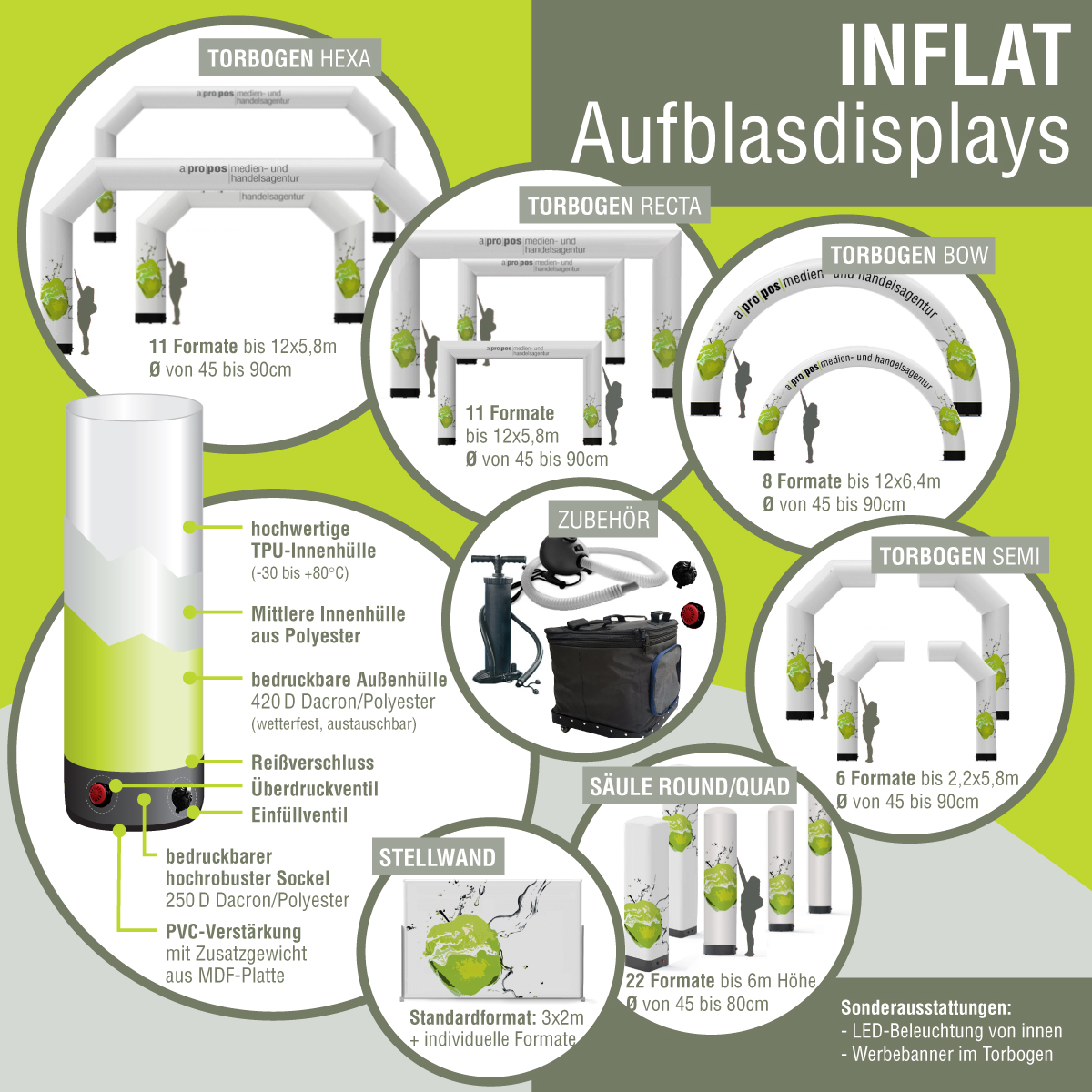 • INFLAT TUBE, runde und viereckige Werbesäulen mit bis zu 500cm Höhe.